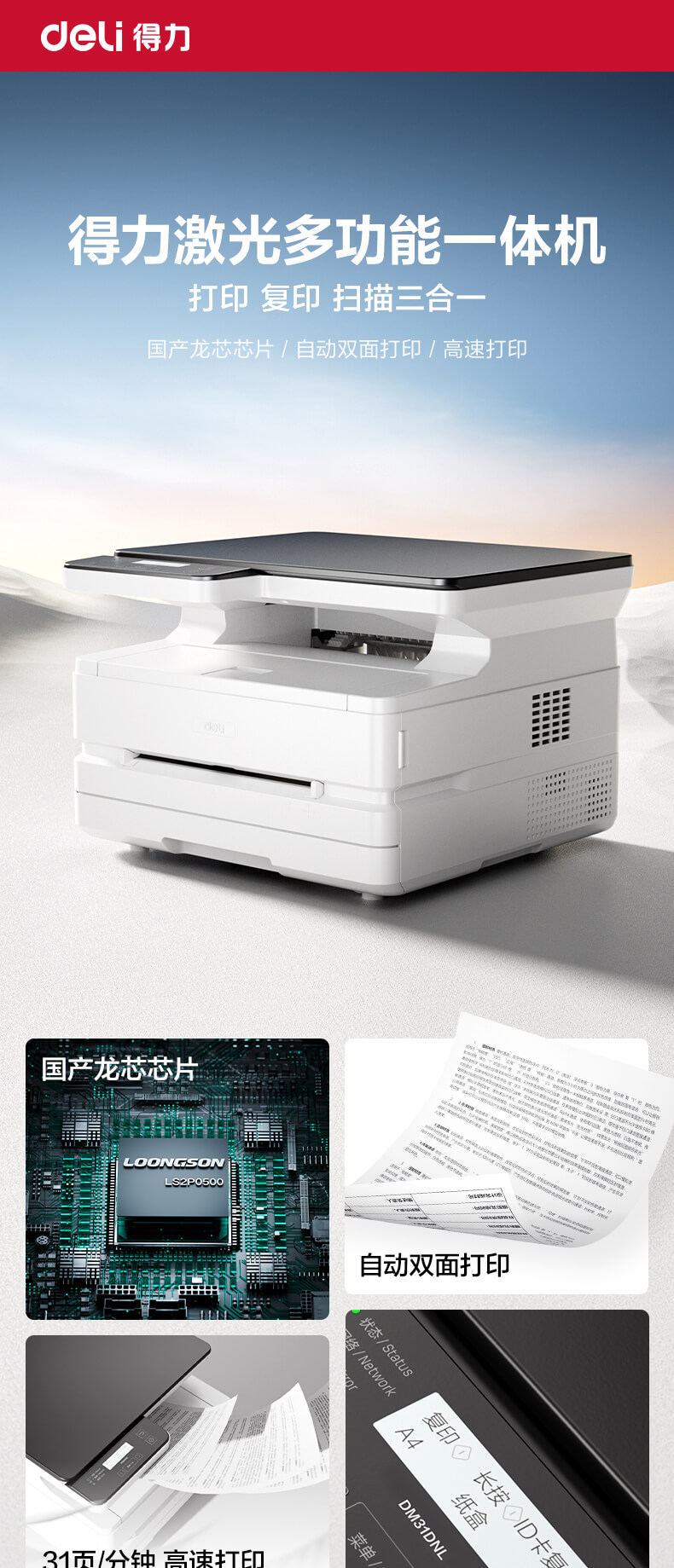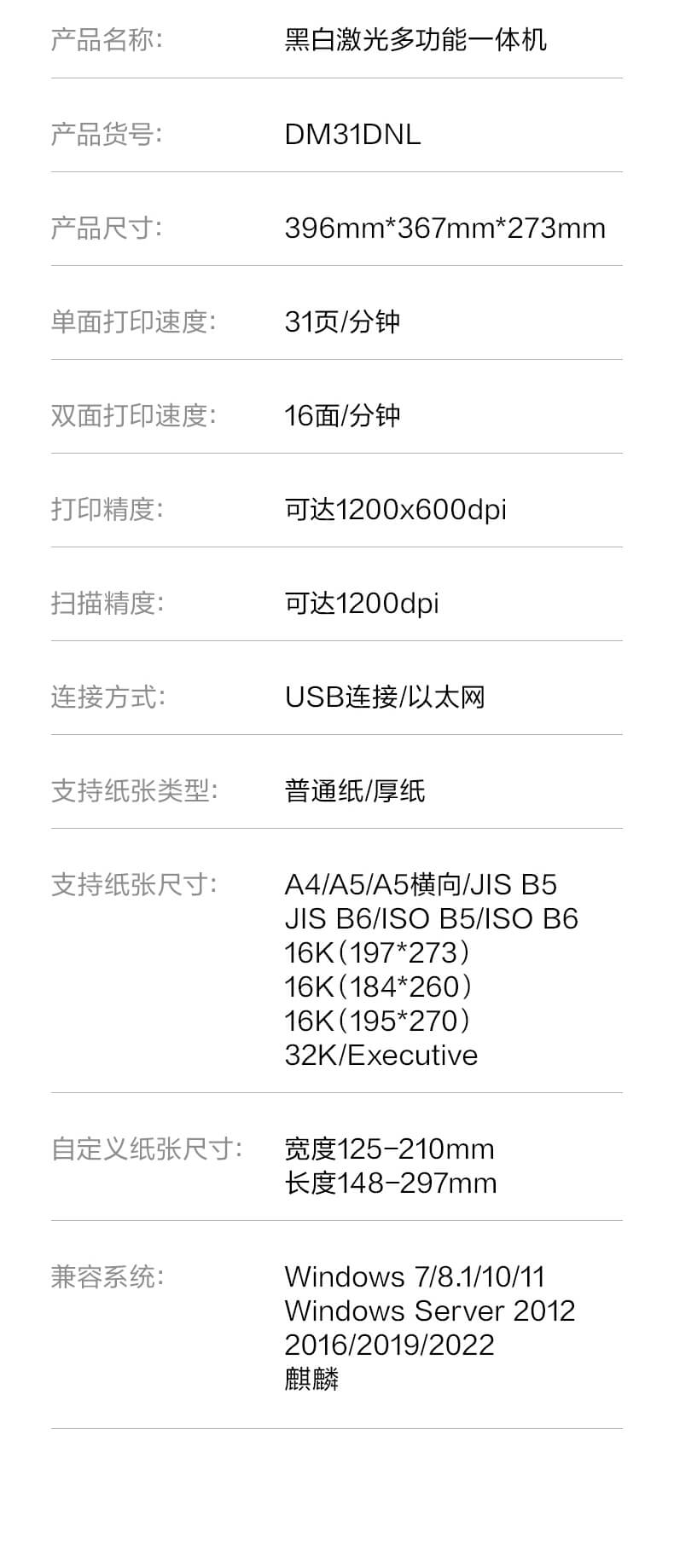 物料描述:DM31DNL纽诗黑白激光多功能一体机(白色)(台)